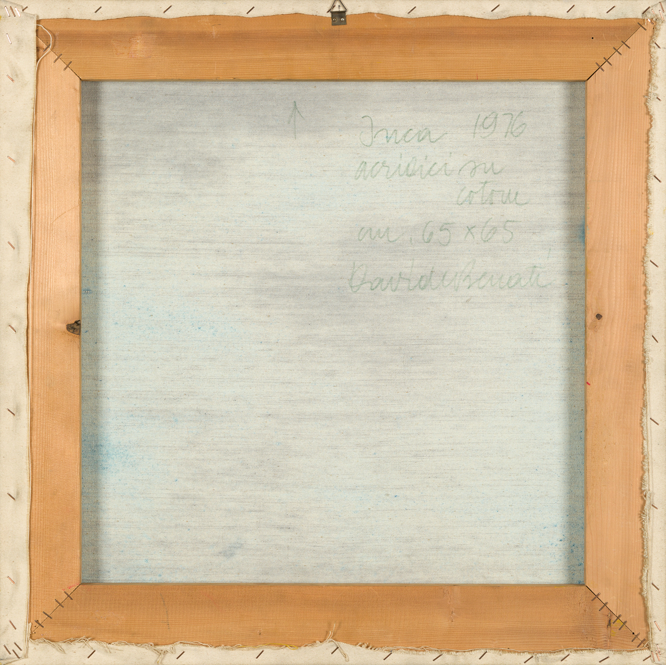 Firma, titolo, datazione, misure, tecnica e indicazioni per il posizionamento al retro