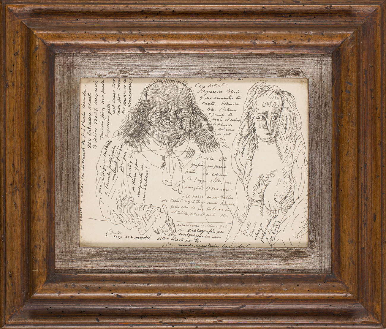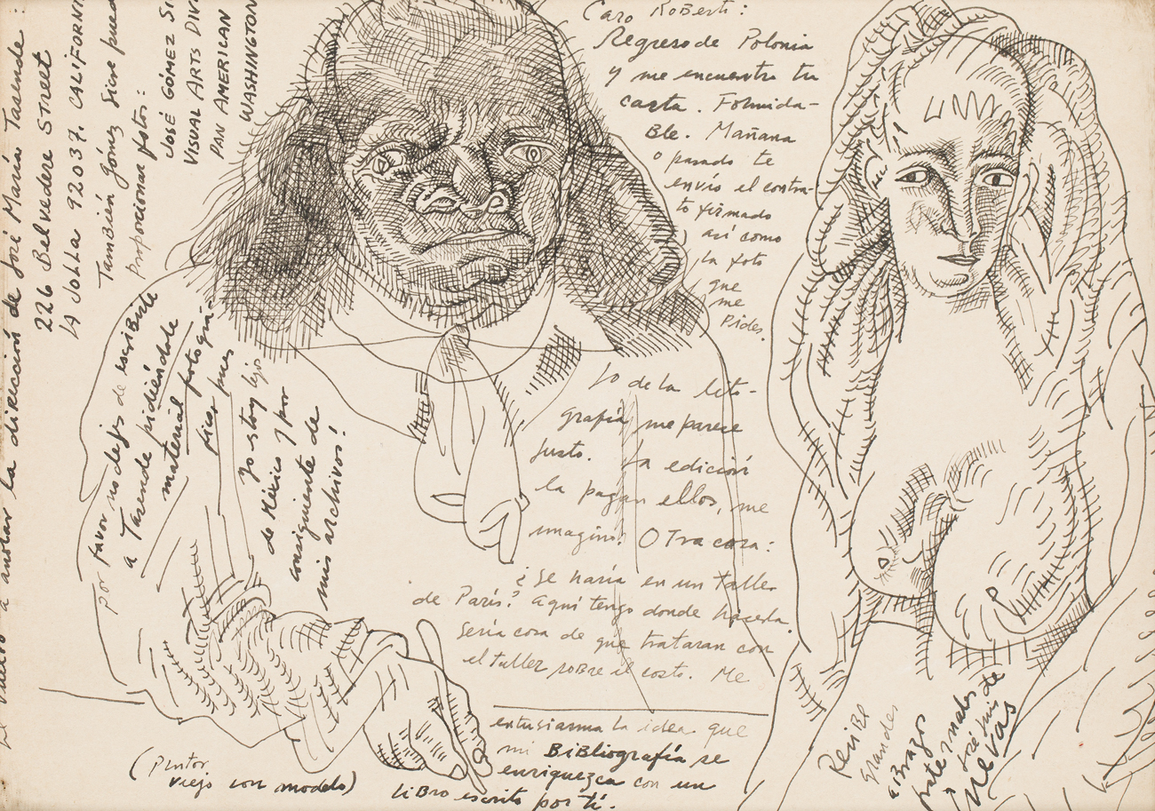 Disegno - lettera inviata dall'Artista messicano, in quel tempo residente a Parigi, al critico Roberto Sanesi, per confermare la sua volontà di collaborare alla realizzazione di una edizione di opere grafiche e di un catalogo curati dal critico italiano, progetti effettivamente realizzati nel 1978/1979 in collaborazione con il centro d'arte Zarathustra di Milano