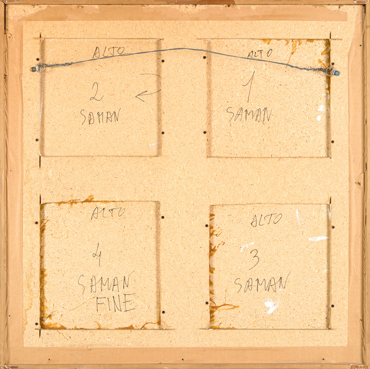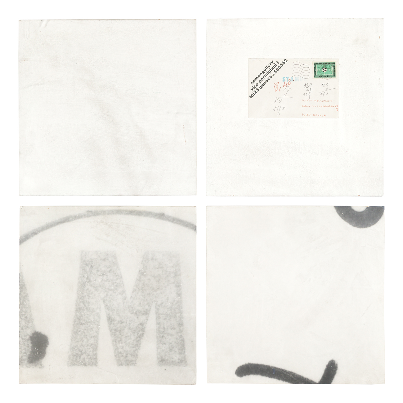 Collage e tecnica mista su quattro tavole applicate su pannello