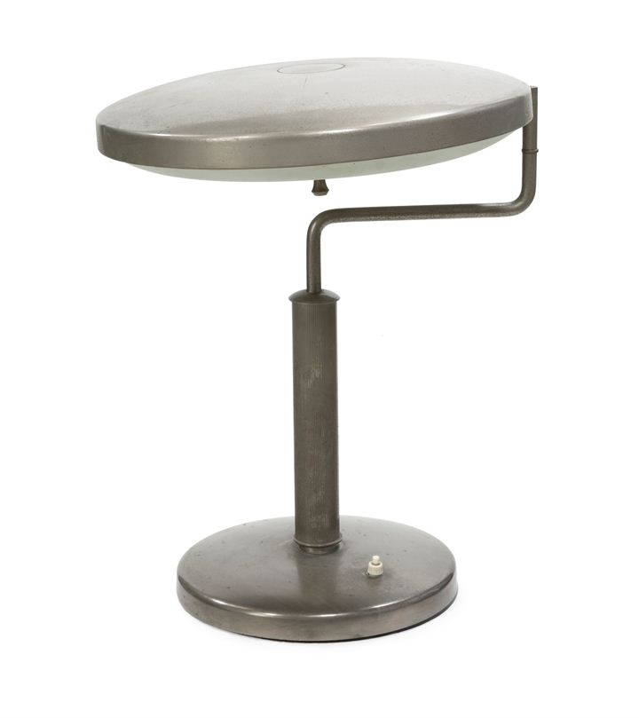PULIZER GUSTAVO Lampada da tavolo in metallo nichelato e spazzolato,...