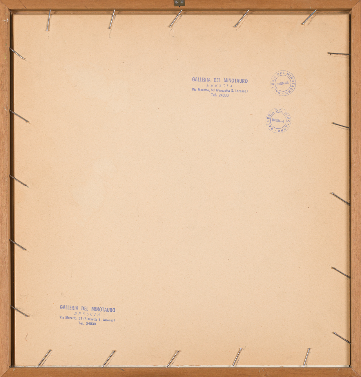 Timbri della Galleria del Minotauro (BS) al retro del cartone protettivo