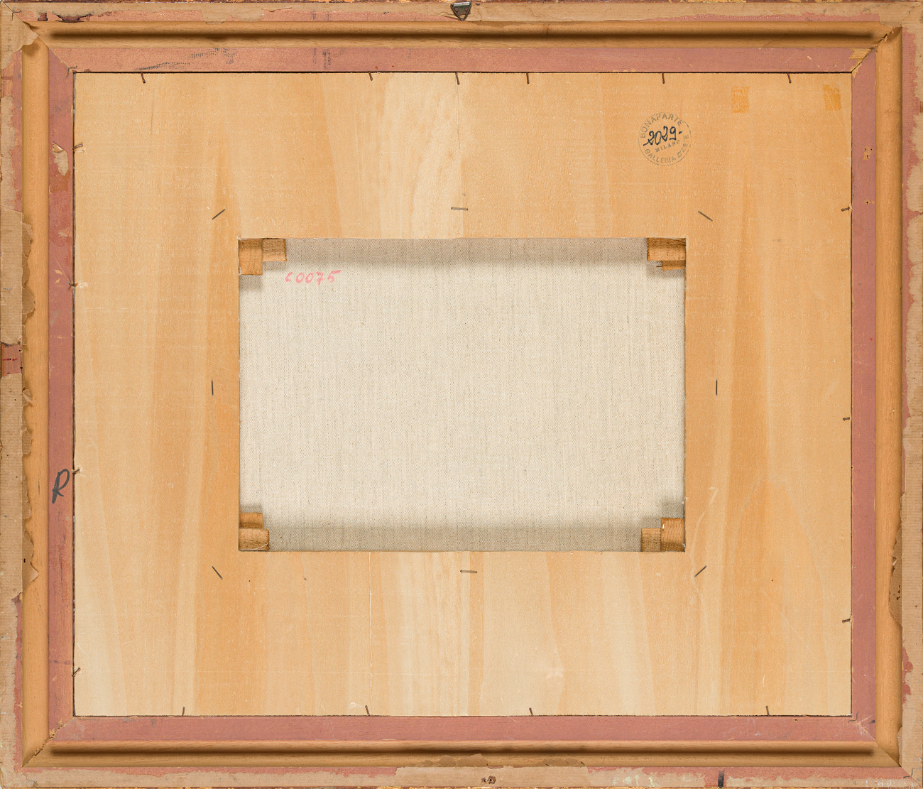 Timbro della Galleria d'Arte Bonaparte (MI) con relativo numero di inventario al retro