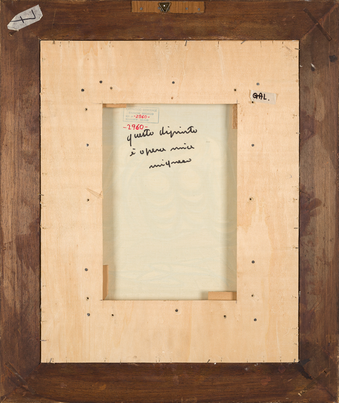 Timbro con numero di repertorio del Catalogo Generale Giuseppe Migneco al retro