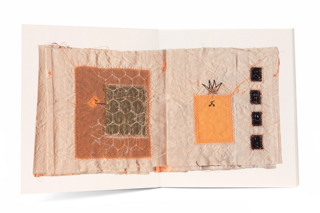 artist book with hand-sewn cotton threads in a cardboard box 11 02x9 44x0 59 in