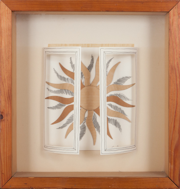 mixed media in a wood and glass box 16 14x15 35x2 95 in