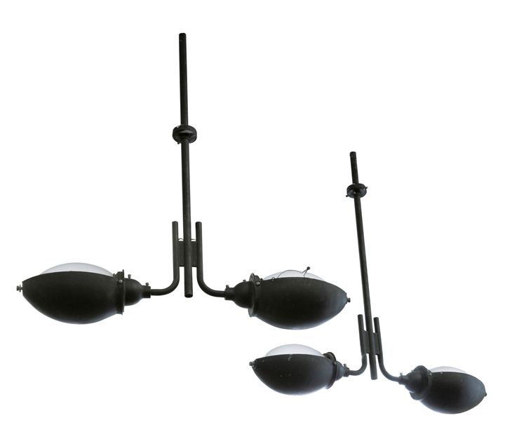 Due rari lampadari costruiti con riflettori Zeiss Ikon.