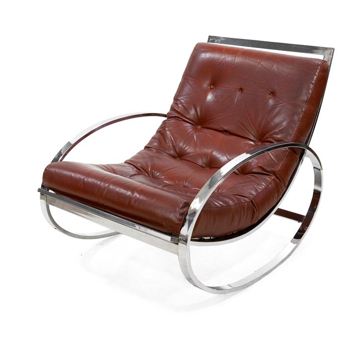 Lotto 1434 | BAUGHMAN MILO Sedia a dondolo con struttura in metallo cromato e imbottitura...