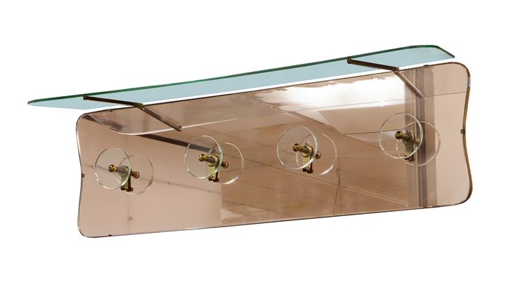 Attaccapanni da parete in vetro italor temperato con quattro pomelli e ripiano in cristallo trasparente.