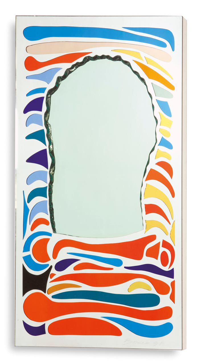 Lotto 1442 | SPECCHIO Splash Specchio inciso e dipinto in policromia. Firmato Boero 91 cm...