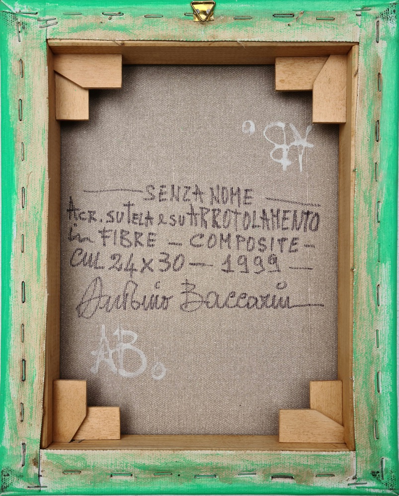 Arrotolamento di fibre di vetro e acrilico su tela 24x30 cm; firma, titolo, tecnica e anno al retro.