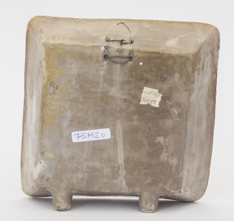 'The Annunciation' relief tile in majolica with metallic luster 1950's.
