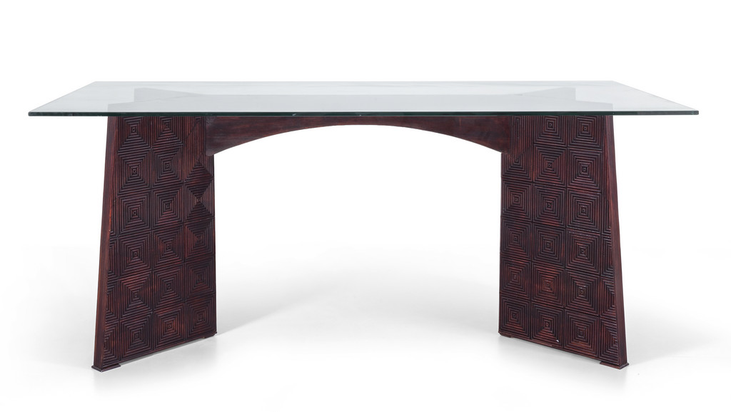 Rosewood Rosewood veneered wood and bevelled crystal top.