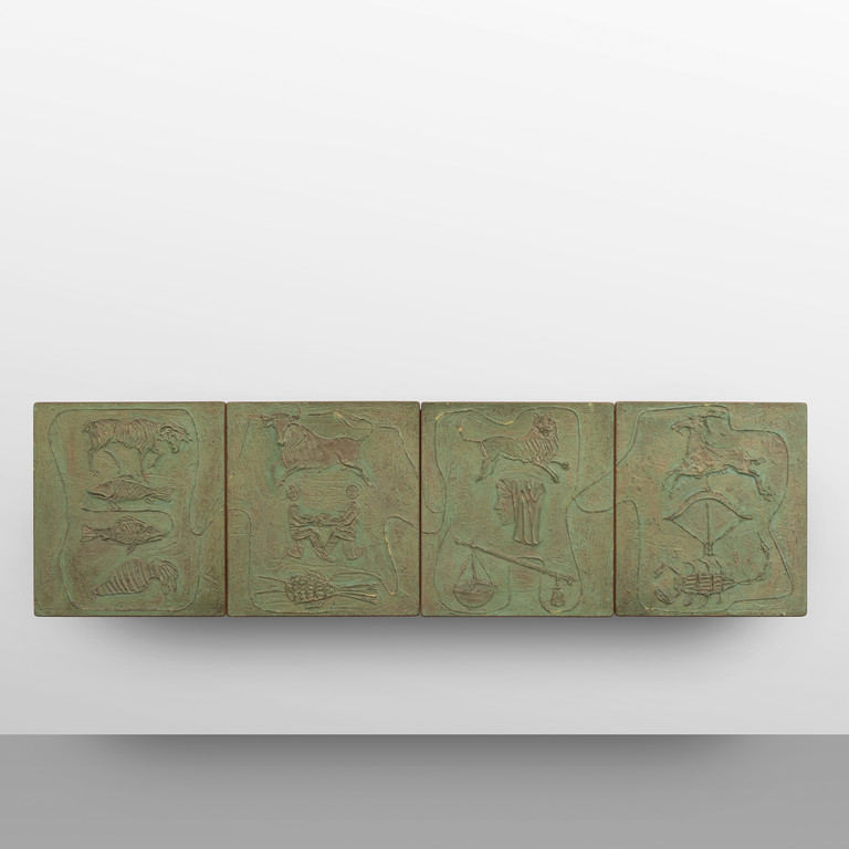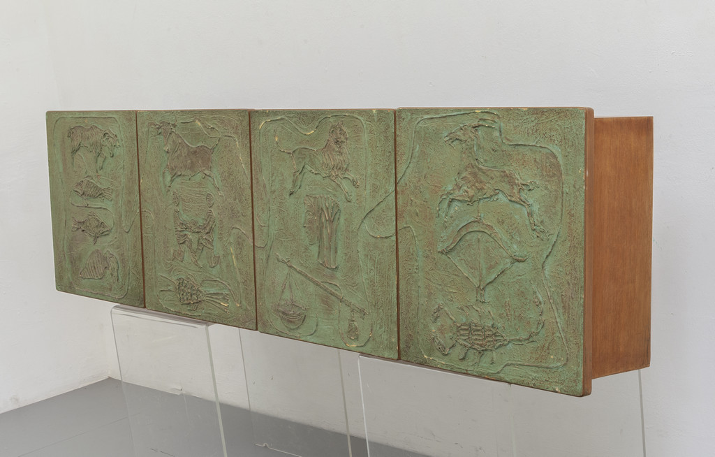 Multistrato decorato a bassorilievo su applicazione di papier-maché.