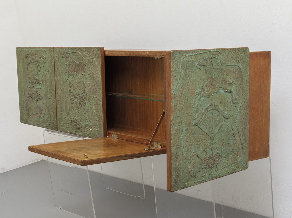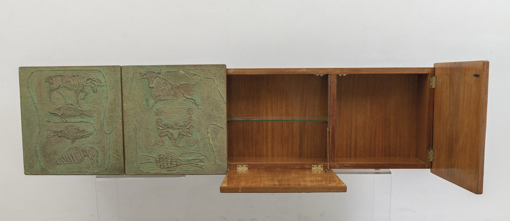 A WALL MOUNTED BAR CABINET late 1940's-early 1950's.