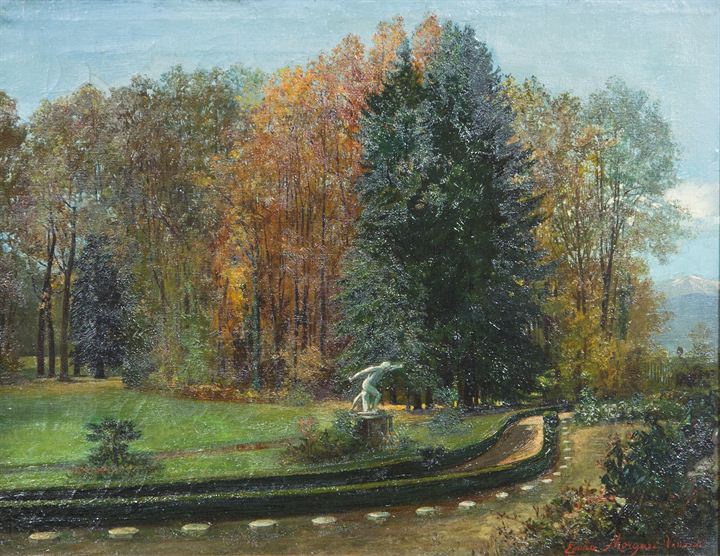 MORGARI VINARDI EMILIA Torino 1858 - ? "Nel parco - d'autunno" 35x50 olio su...