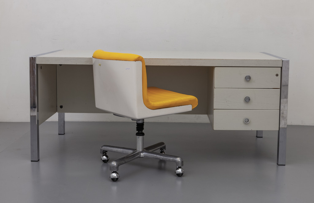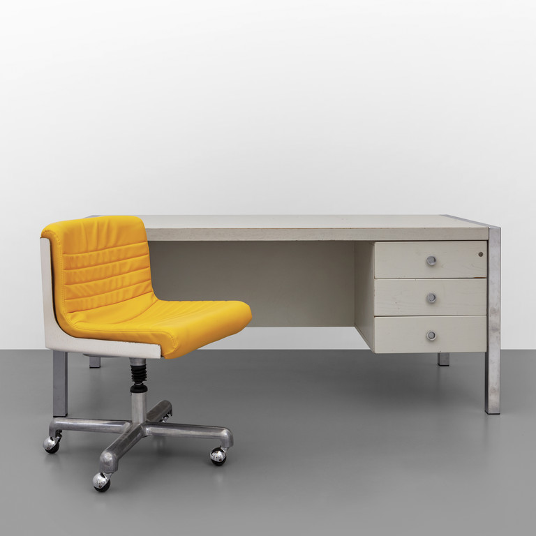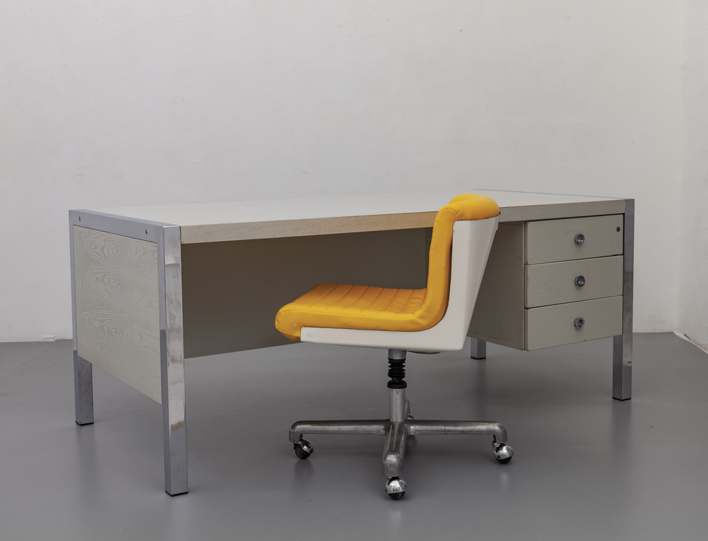 A desk and a chair manufactured by POLTRONOVA for DESIGN CENTRE 1970 (SMAU award 1970).
