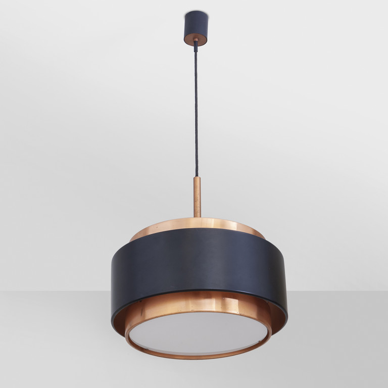 Brushed copper lacquered aluminum and opaline glass
