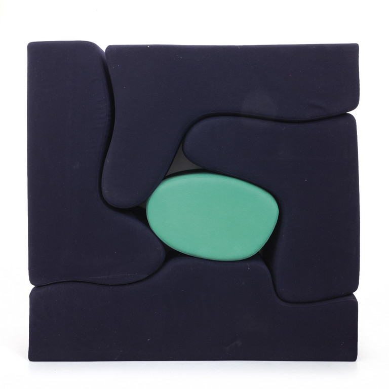 Blocchi sovrapponibili di resina espansa rivestiti con fodere sfilabili in tessuto.