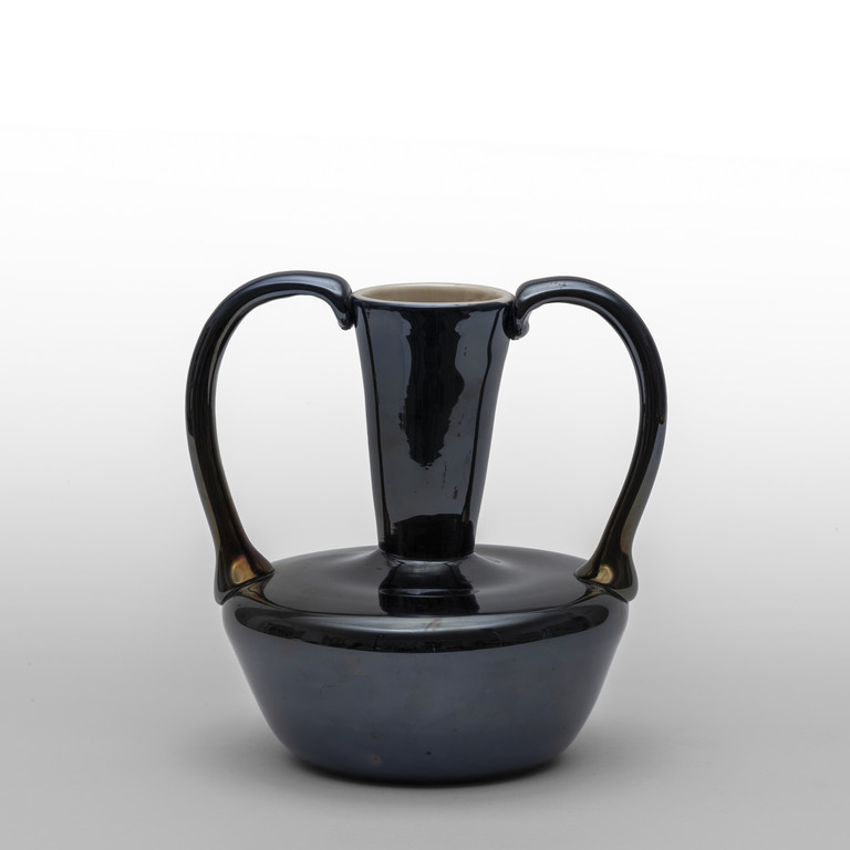 Un vaso biansato in vetro nero iridato incamiciato ' 1930 ca.