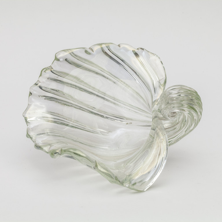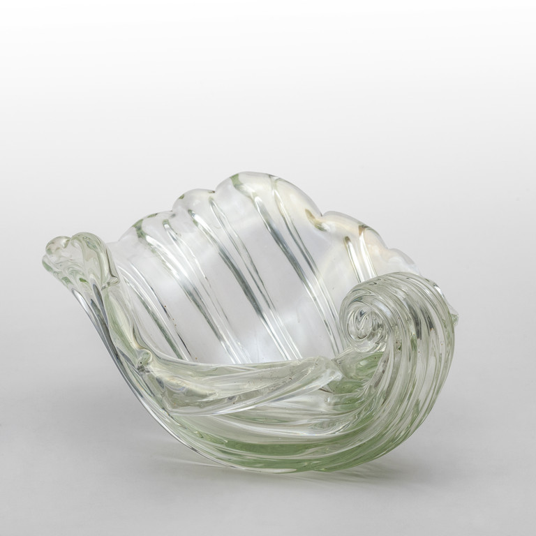 Una coppa a conchiglia in cristallo iridato circa 1942.