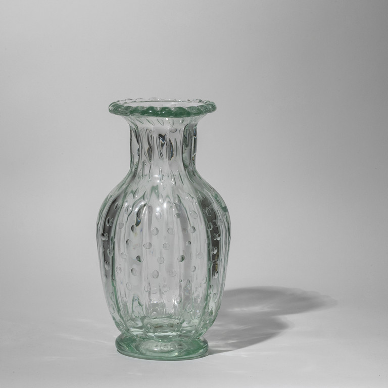 Un vaso in vetro pesante trasparente a bolle regolari circa 1940.