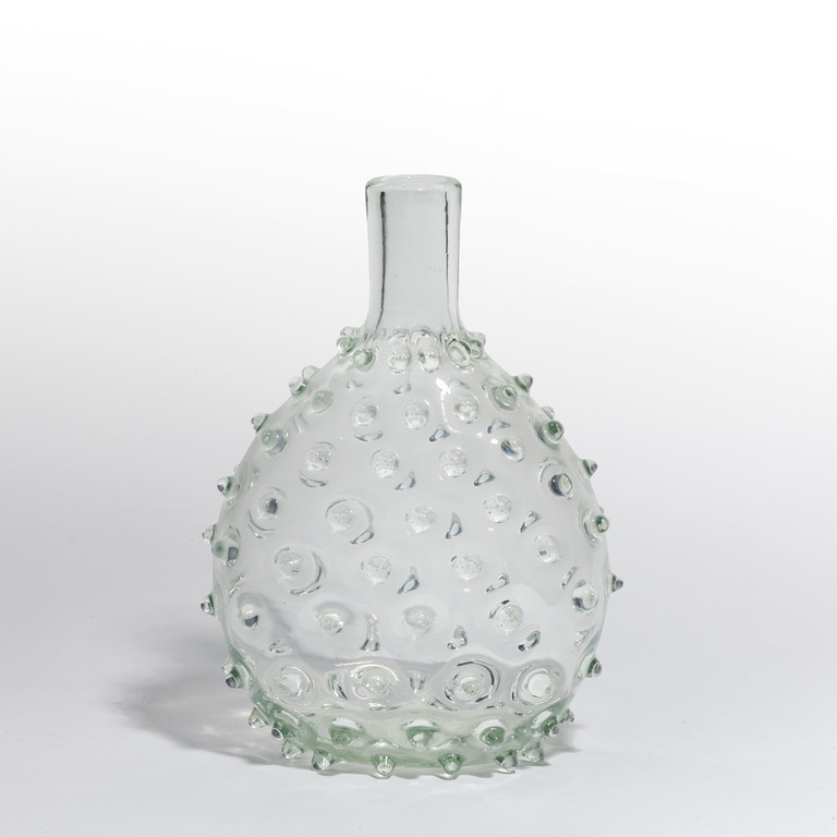 Un vaso in vetro trasparente con corpo a rilievi circa 1940.