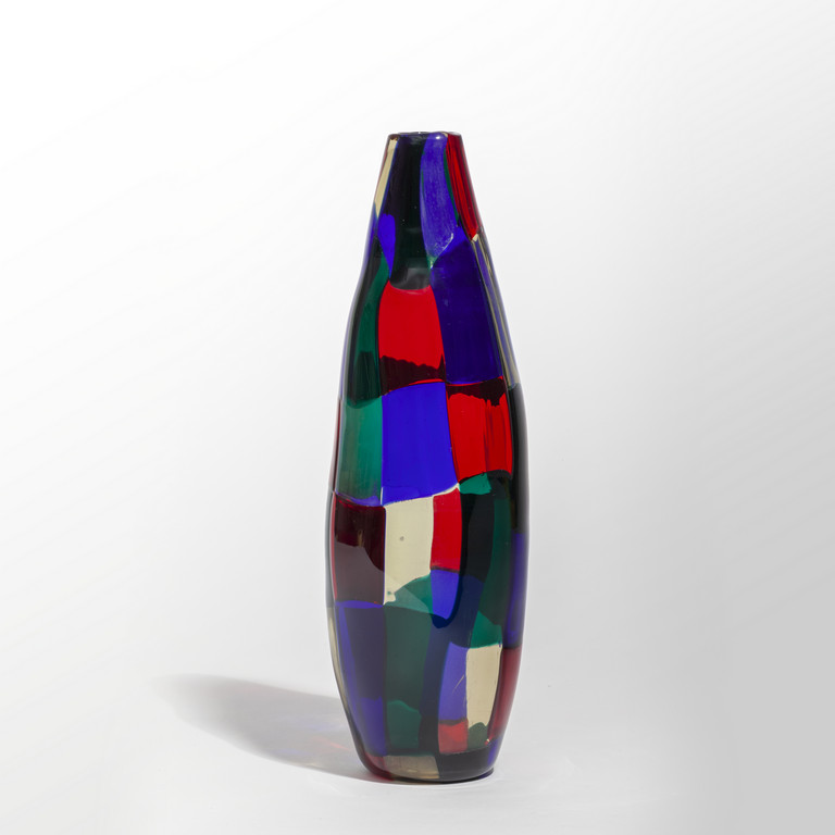 Un vaso 'pezzato' a tessere colorate variante 'Parigi' circa 1985.