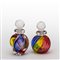 Due boccette 'carnevale' in vetro blu rubino e giallo con tappi in cristallo ' 1990
