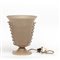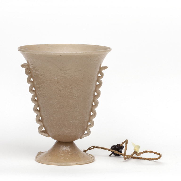 Una lampada da tavolo in vetro pulegoso con applicazione di morise ondulate