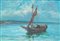 AUTORE NON IDENTIFICATO "Paesaggio con barca" 15,5x22 olio su cartoncino...