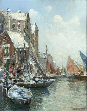 PRATELLA FAUSTO Napoli 1888 - 1964 "Marina" 30x24 olio su tavola Opera...