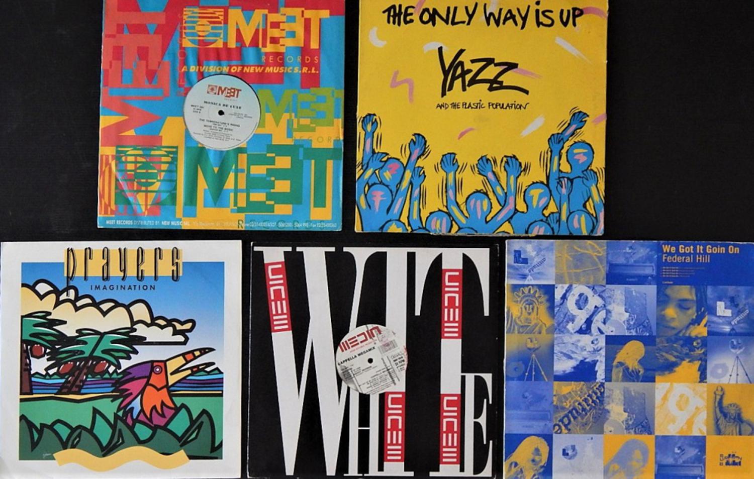 Lotto di 3 vinili 33 giri e 2 vinili 45 giri genere 'electronic house':