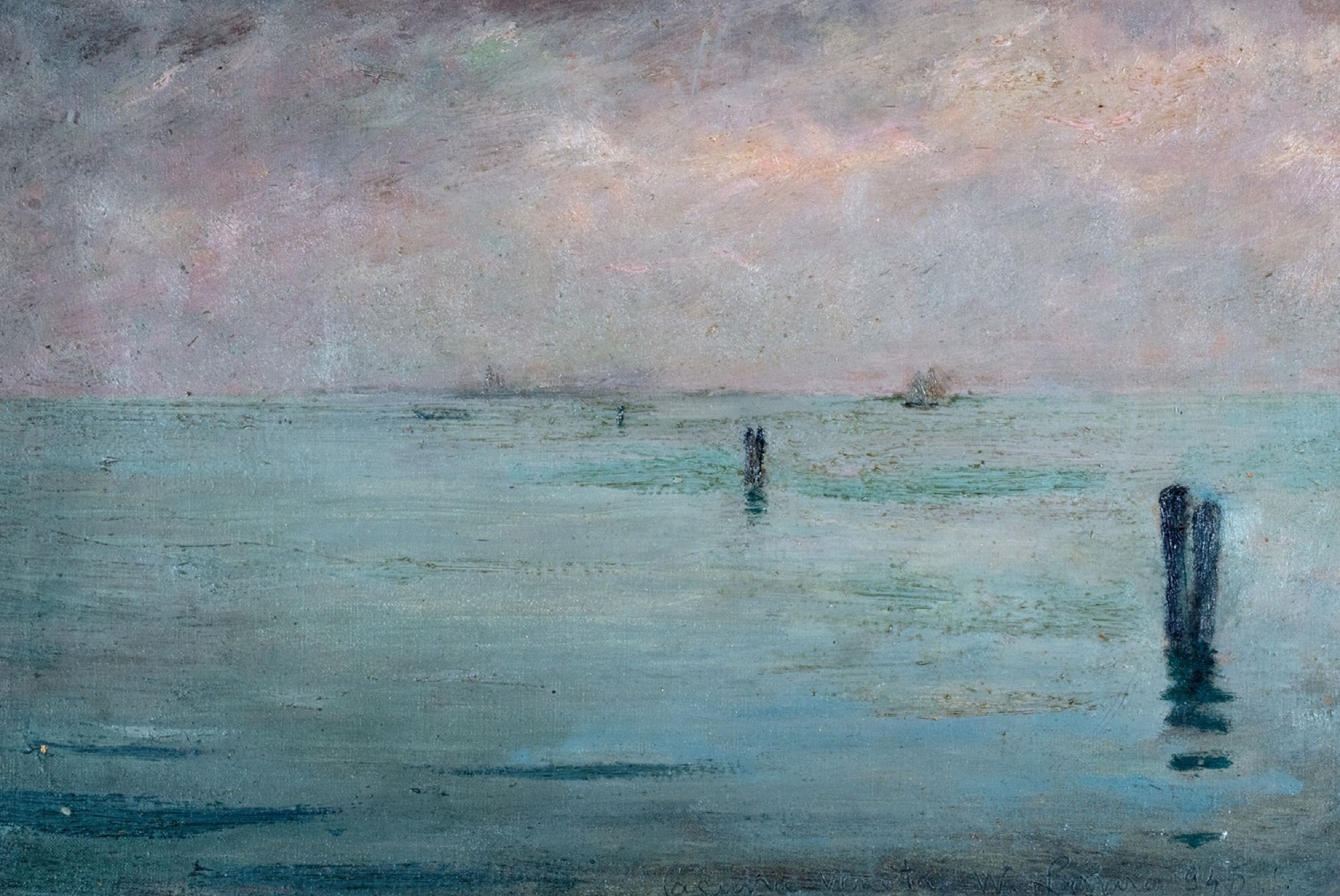 Firmato in basso a destra: W. Lazzaro, 945, Laguna Veneta