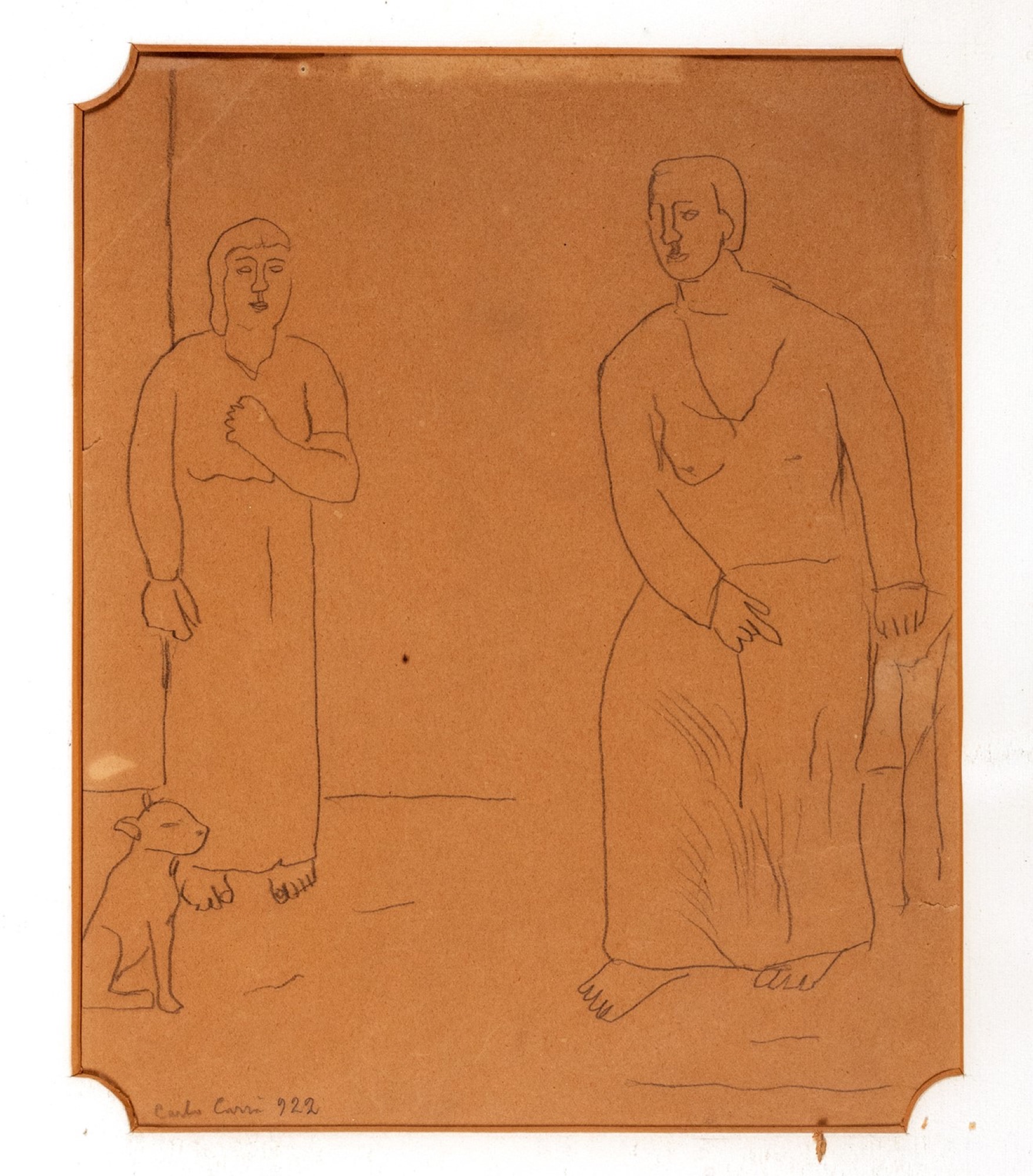 Carlo Carrà (Quargnento 1881-Milano 1966) - Due figure con cane, 1922
