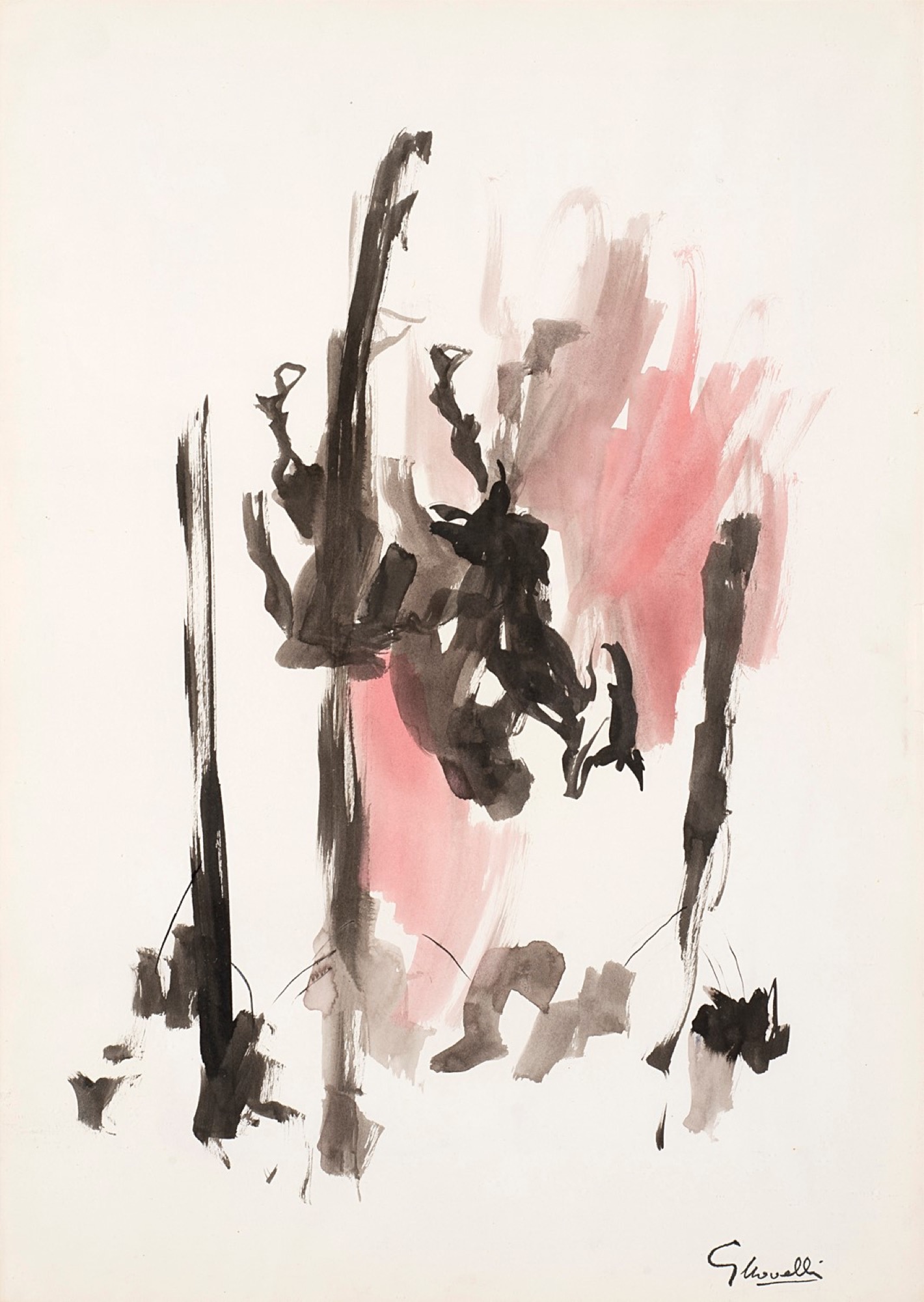 Lotto 131 | Gastone Novelli (Vienna 1925-Milano 1968) - Senza titolo - nero, marrone e rosa