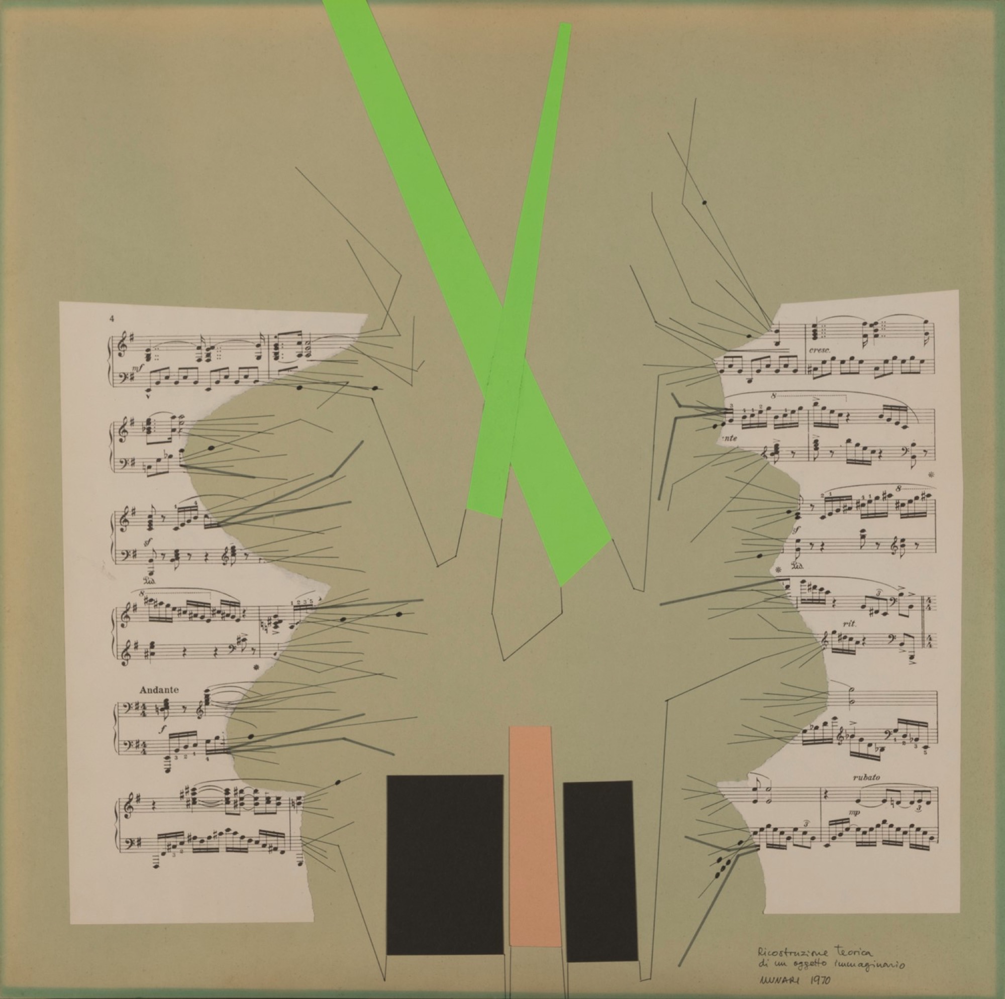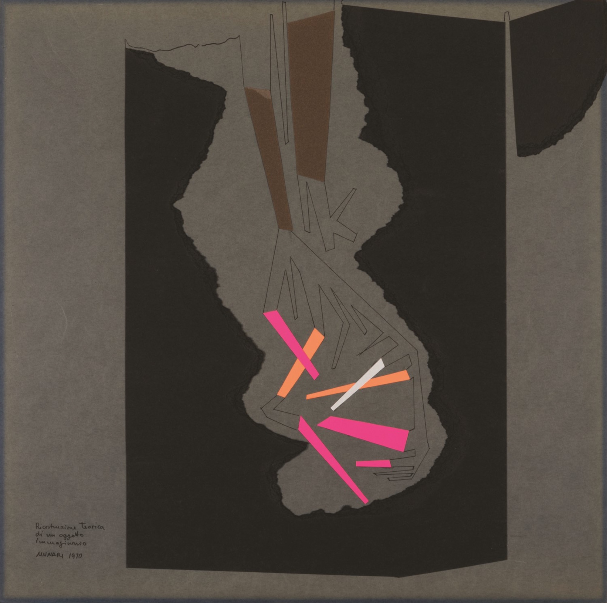 D. Titolato, datato e firmato a sinistra:Ricostruzione teorica di un oggetto immaginario. Munari 1970.