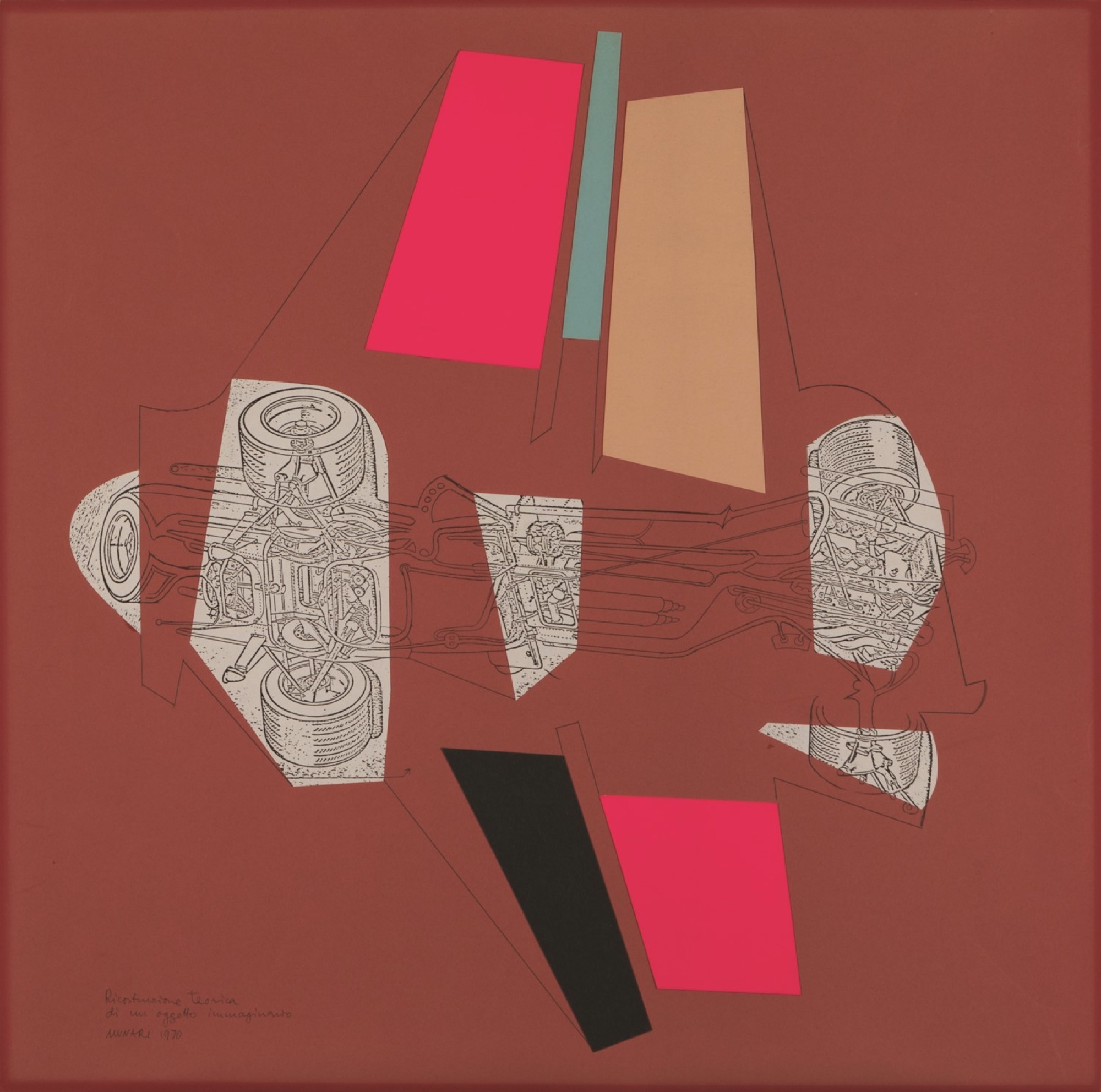 A. Titolato, datato e firmato a sinistra: Ricostruzione teorica di un oggetto immaginario. Munari 1970;