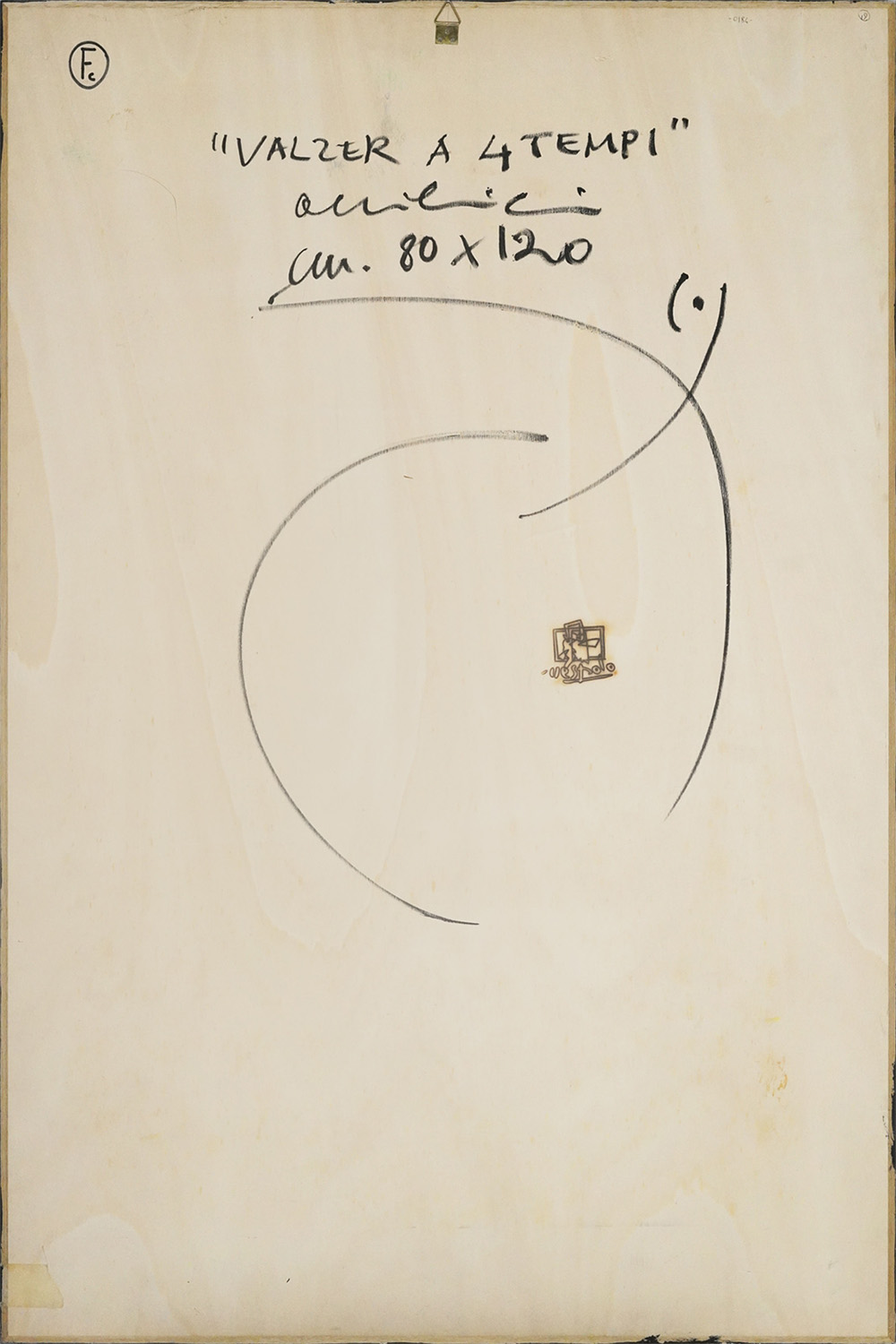 Titolo, tecnica, misure, e marchio dell'artista sul retro