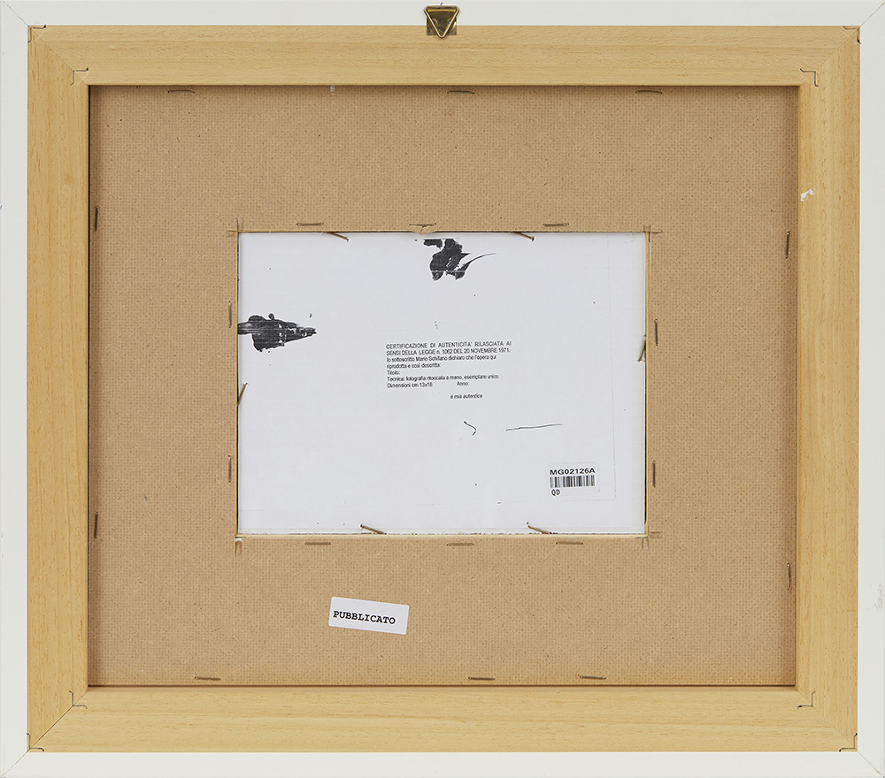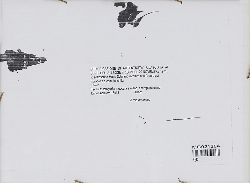 L'opera è accompagnata da certificato di autenticità rilasciato dall'Archivio Generale dell'Opera di Mario Schifano, Roma in data 28/06/2007.
