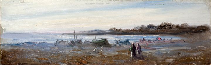 RODA LEONARDO Racconigi (CN) 1868 - 1933 "Marina" 10,5x33,5 olio su...