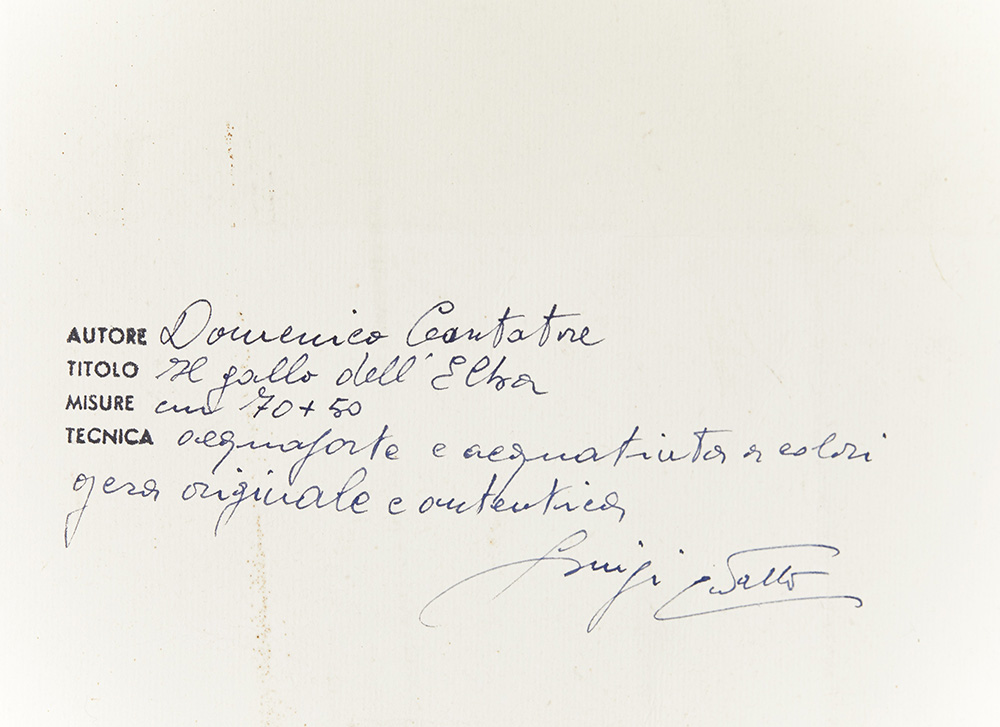 Dichiarazione di autenticità rilasciata dal Professor Luigi Cavallo sul retro