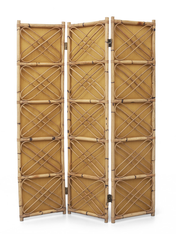 UN PARAVENTO, anni '60. <br>Malacca, giunco e
