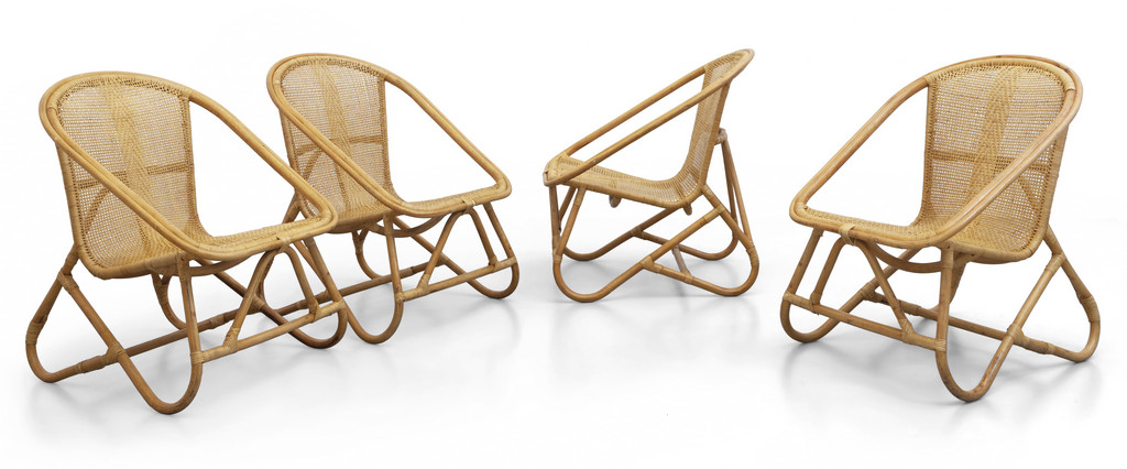 QUATTRO POLTRONCINE, anni '60. <br>Bambù e canna