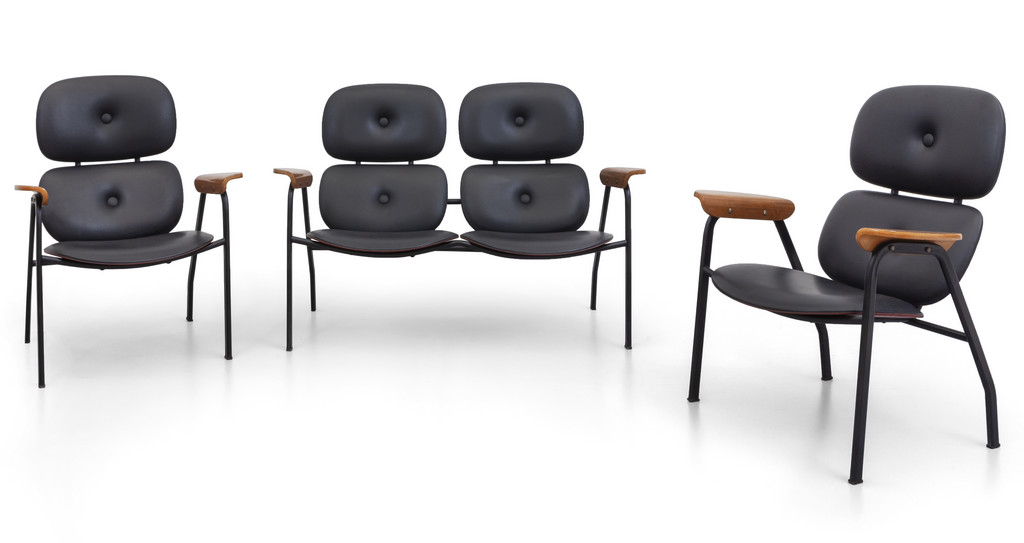DUE POLTONCINE E UN DIVANO anni 60.<br>Acciaio