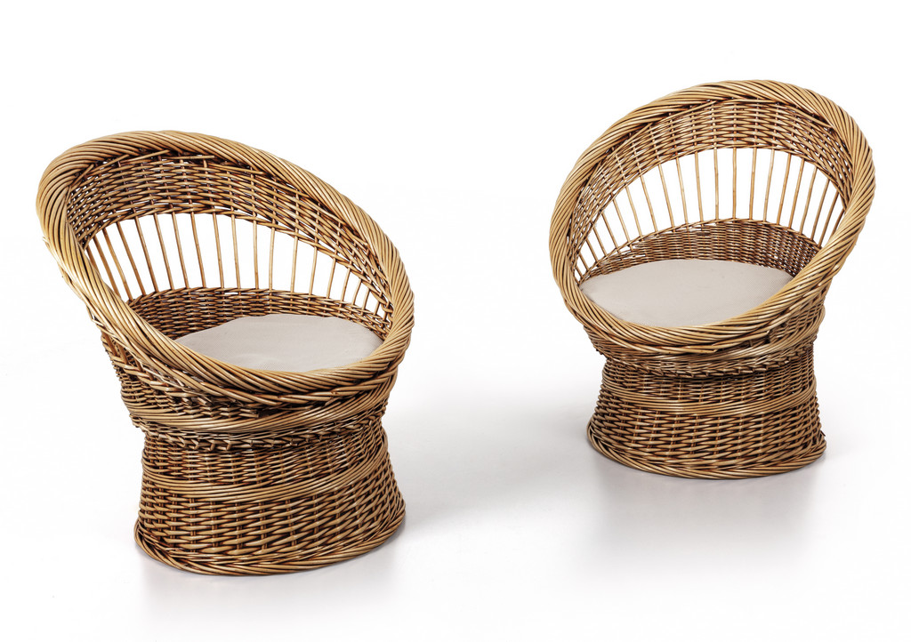 DUE POLTRONE, anni '60. <br>Giunco, cuscini