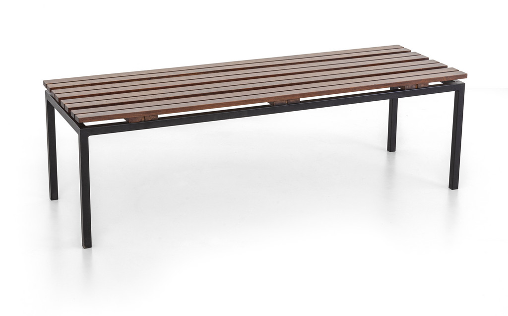 Acciaio verniciato, legno di teak tinto all'anilina.