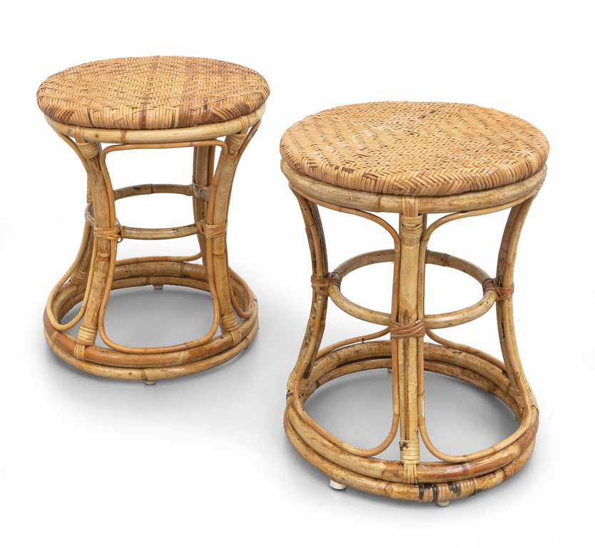Lotto 3473 | DUE SGABELLI, anni '60. <br>Malacca, giunco e