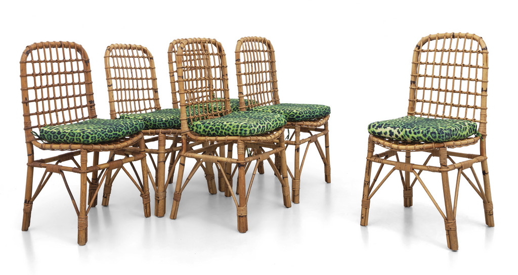 SEI SEDIE, anni '60. <br>Malacca, giunco canna