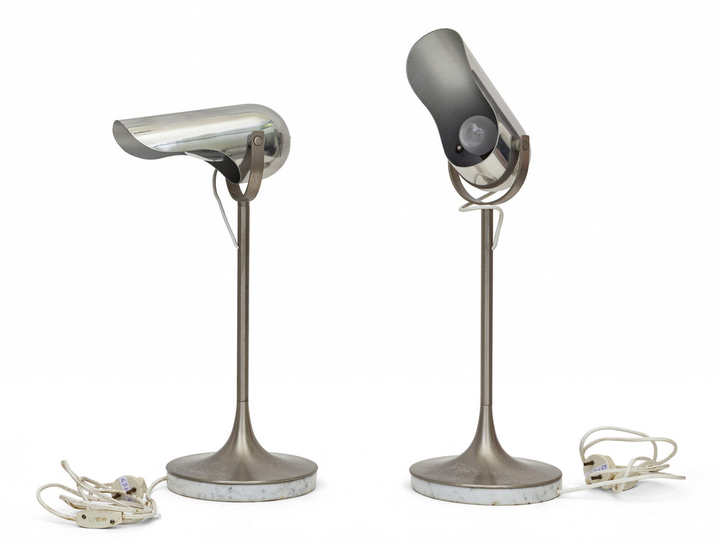 DUE LAMPADE DA TAVOLO, anni '70. <br>Marmo,