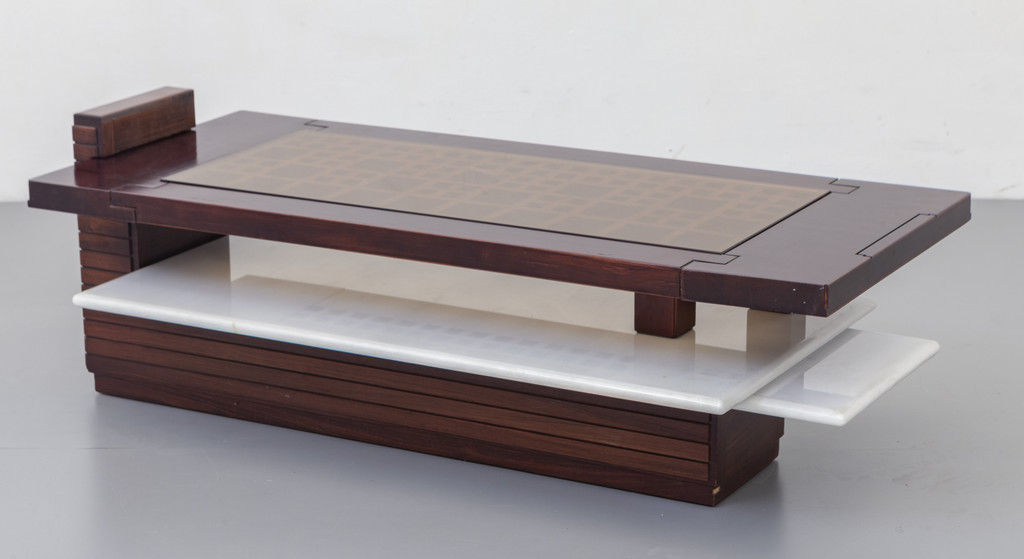 UN TAVOLINO, anni '70. <br>Legno tinto